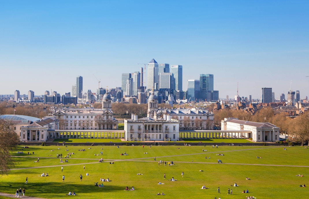 Greenwich ligger i en bugt af Themsen, hvor landet hæver sig kraftigt og giver en klar udsigt opstrøms mod London, nedstrøms mod havet og ud over marsken på den nordlige bred. I århundreder har dens placering gjort den synlig på lang afstand og til et naturligt sted at slå sig ned.