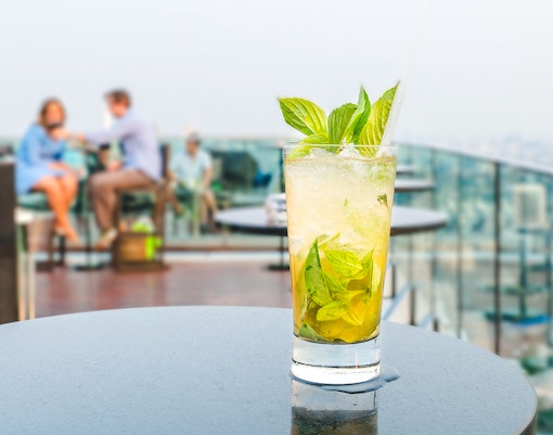 Nyd drinks og middag ved floden, mens solen går ned over Themsen, med udsigt til slottet fra terrassen.