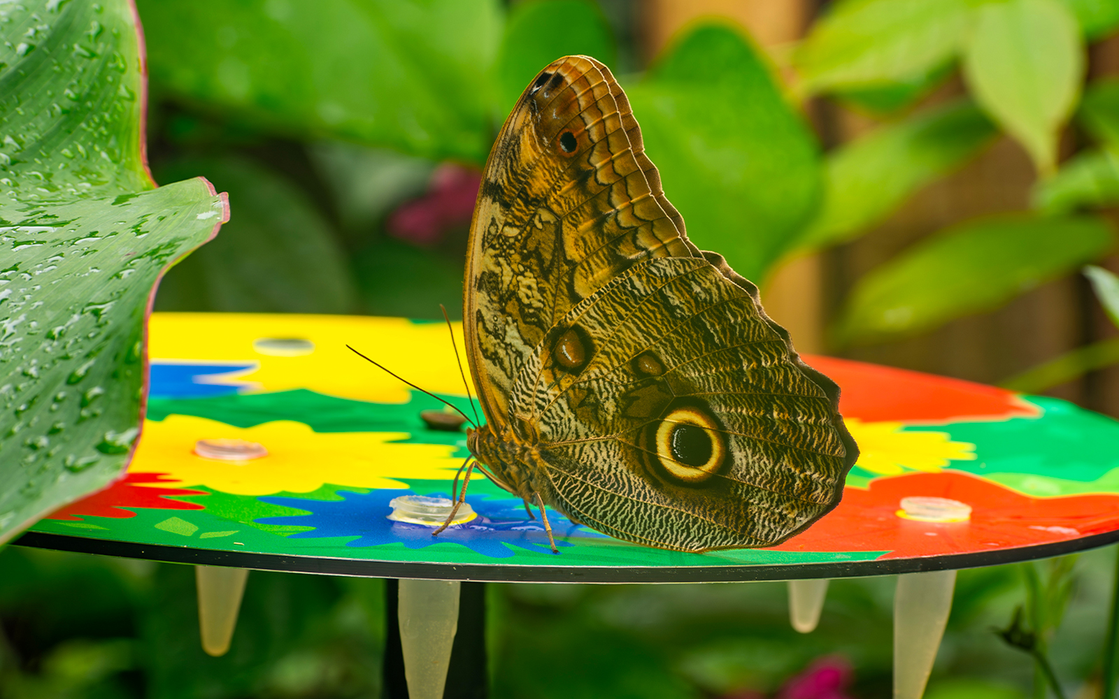Eine warme, regenwaldähnliche Umgebung mit tropischen Pflanzen, über 30 Schmetterlingsarten und einem Puparium, in dem Sie die Schmetterlinge beim Schlüpfen beobachten können.