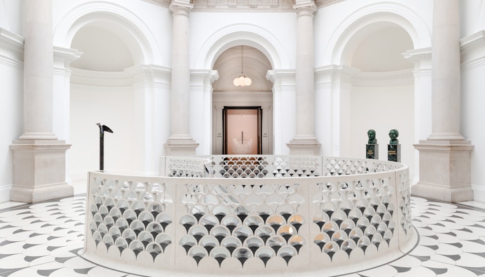 Estas zonas actúan como un eje central que une las galerías, mostrando la arquitectura de la Tate Britain al tiempo que ofrecen vistas del Támesis y circulación entre las plantas.
