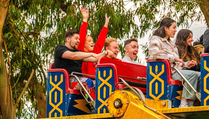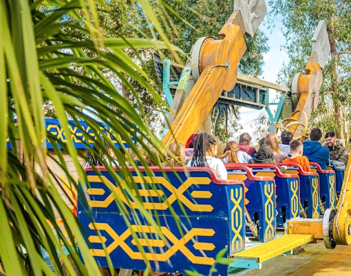 Una montaña rusa junior que es rápida pero simpática. Con un requisito de baja altura y giros suaves, es una gran primera montaña rusa para los niños. Es mejor montar a media mañana, antes de que se formen colas.