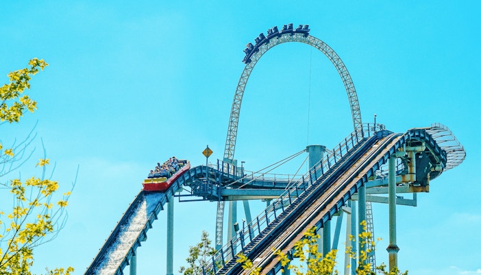 Coloso | 140-196 cm | Afecciones de cabeza/cuello | Ventiladores en bucle | Primera montaña rusa del mundo con 10 bucles | 4/5 | Las filas centrales son más suaves |