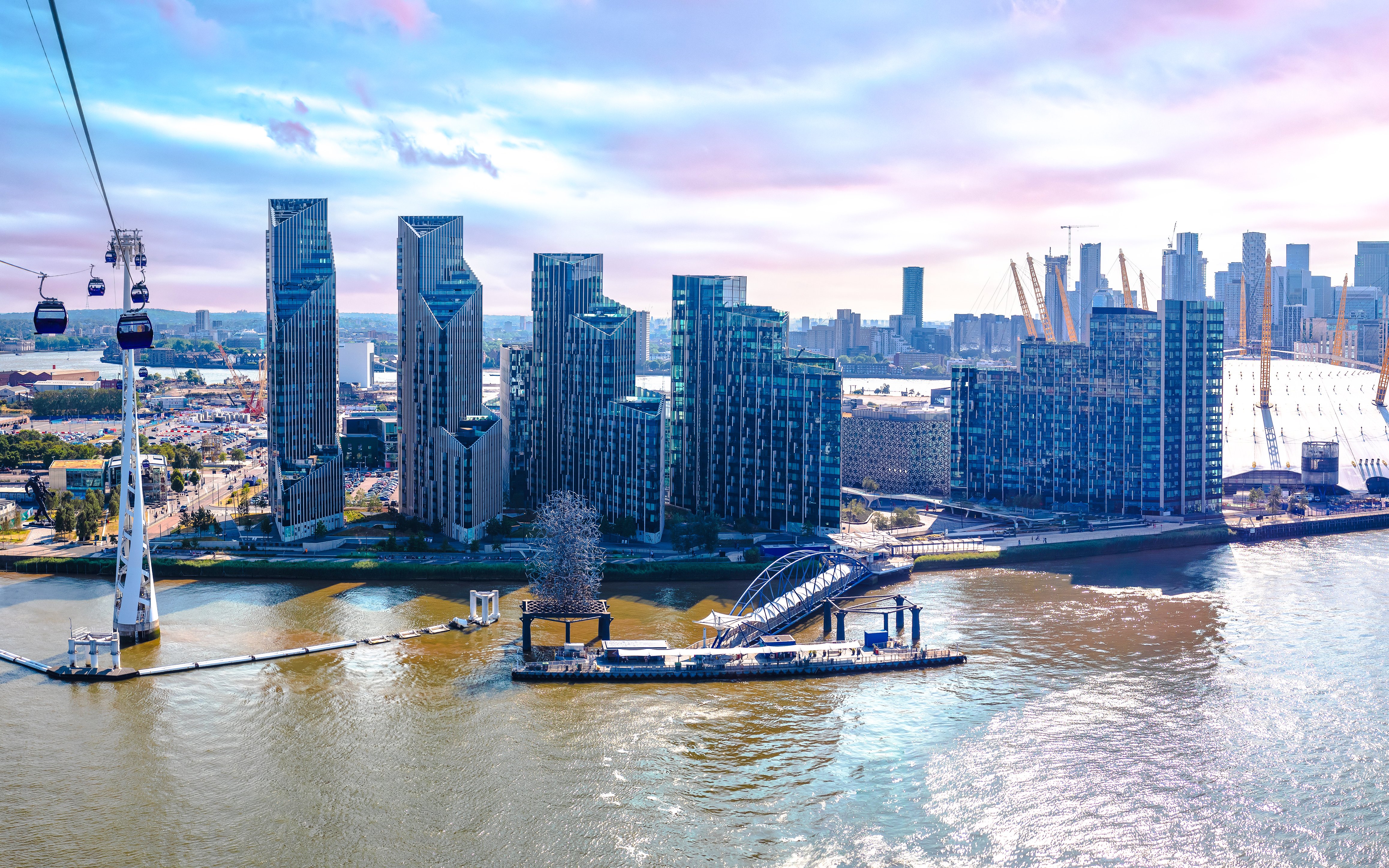 La plupart des visiteurs partent de la station Greenwich Peninsula (près de The O2) ou de la station Royal Docks (près de ExCeL London). Les deux terminaux sont bien desservis par le métro londonien, le DLR, les bus et les services de bateaux fluviaux. Chaque traversée dure environ 10 minutes. Les files d'attente peuvent s'allonger pendant les week-ends, les heures de coucher du soleil et les vacances scolaires. Si vous prévoyez plusieurs activités, commencez par la péninsule de Greenwich, profitez de The O2 ou de Thames Path, puis traversez vers les Royal Docks pour des promenades au bord de l'eau ou des événements de l'ExCeL.