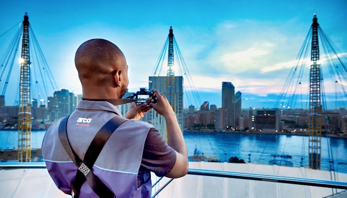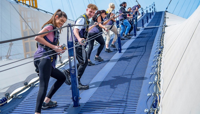 A differenza della maggior parte delle salite sui tetti, Up at The O2 si arrampica sulla membrana in tessuto bianco tipica dell'O2, dando la sensazione di camminare sull'aria.