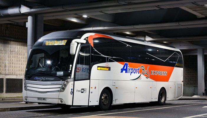 Du kan gå om bord på Stansted Ekspress på Stansted Airport jernbanestasjon, som ligger rett under flyplassen og en 2 minutters spasertur fra ankomsthallen.