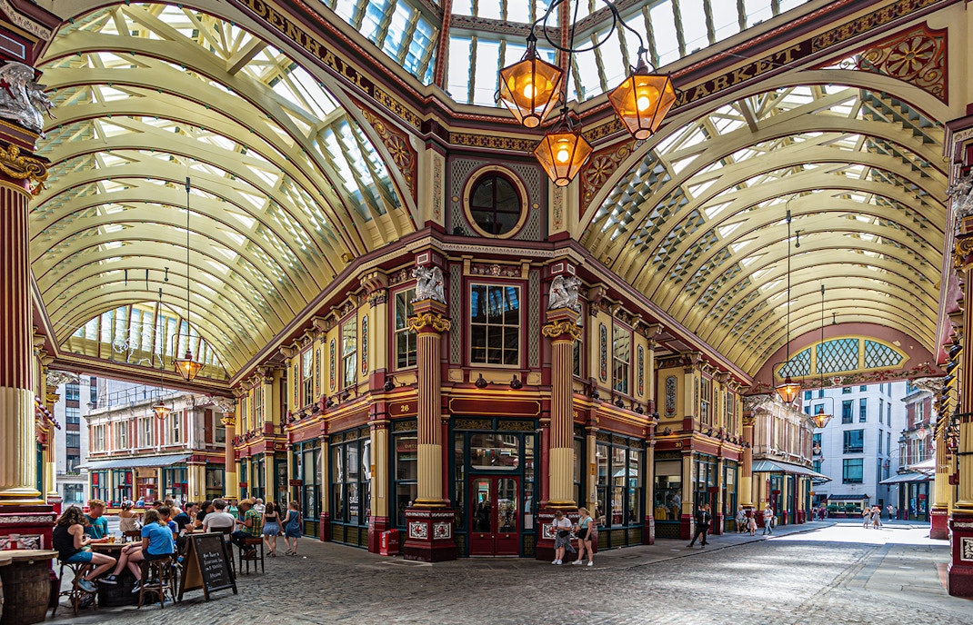 Pasaż Harry'ego Pottera minus dzienne garnitury Wiktoriańskie żelazo świeci pod świątecznymi girlandami do połowy listopada. Sfotografuj puste bruki, a następnie napij się cydru z przyprawami w pubie New Moon; większość sklepów zamyka się o 18:00, więc jest niesamowicie spokojnie.