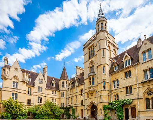 Kolegialne quady świecą miodowo-złotym blaskiem na tle mglistego nieba. Podczas deszczu możesz wybrać się na wycieczkę do Bodleian Library lub krużganków Christ Church, a na rozgrzewkę zjeść chai na Covered Market.