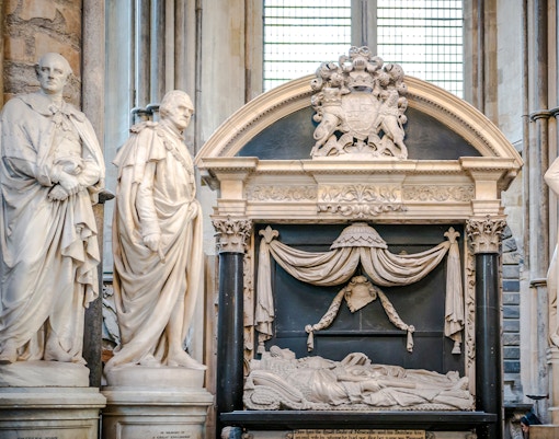 Proffstips: En solig dag kan du besöka det norra transeptet och se det stora rosettfönstret lysa upp "Statesmen's Corner".